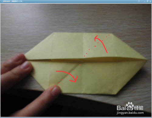 接下来,向着中间线的位置,两边对折(如图)。