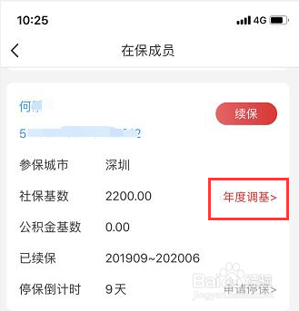 第二步:进入后会看到参保人信息页面中间有一个【年度调基】按钮,点击它