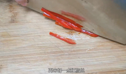4红椒切丝。