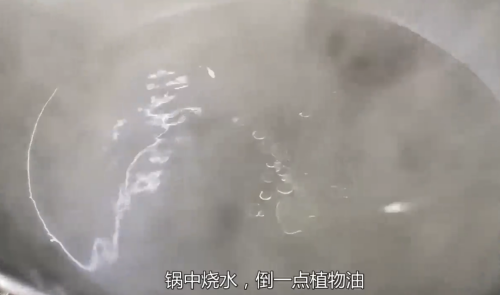 7锅中烧水,倒入一点植物油。