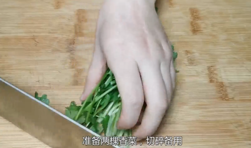 3香菜切碎。
