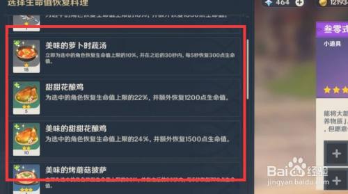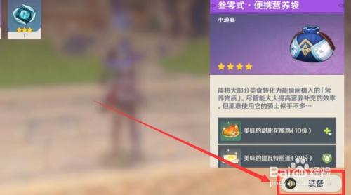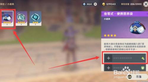 将任意一个复苏料理加入营养袋,如图所示。
