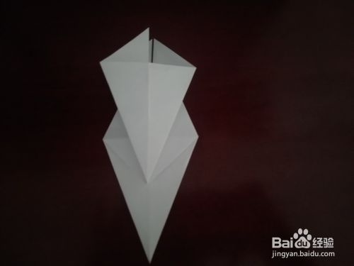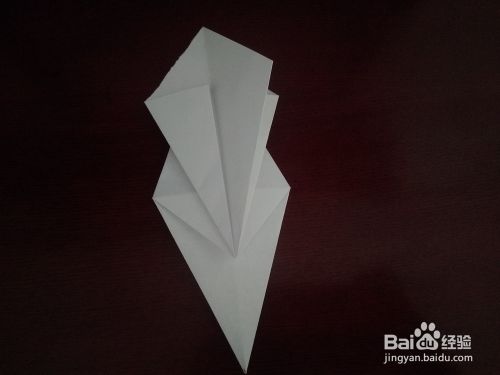 如下把两个角进行折叠。再把顶部的三角形往下折叠。