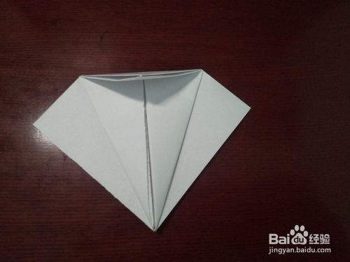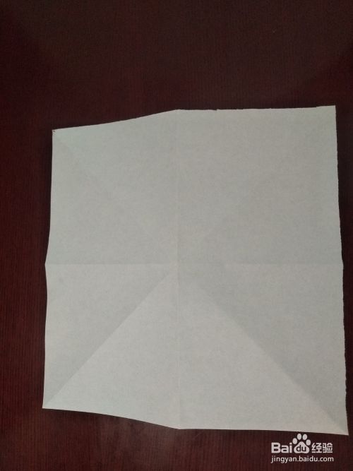 折完之后,把它们打开就会出现折痕,按照折痕,如下折叠,折出一个菱形。