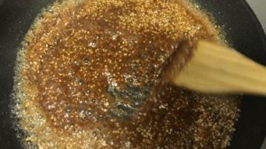 熬至糖浆泡泡变密糖浆颜色微微发黄 转小火