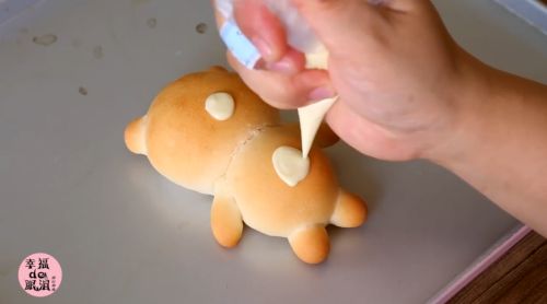 22相同的方法,给面包画出动物五官,这样小熊面包已经做好了。