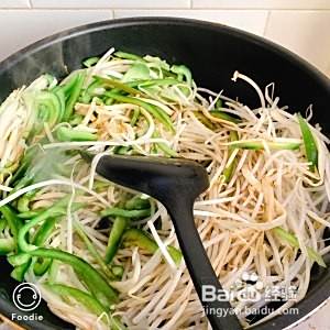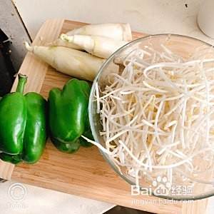 茭白去皮清洗,青椒清洗、绿豆芽清洗干净