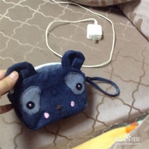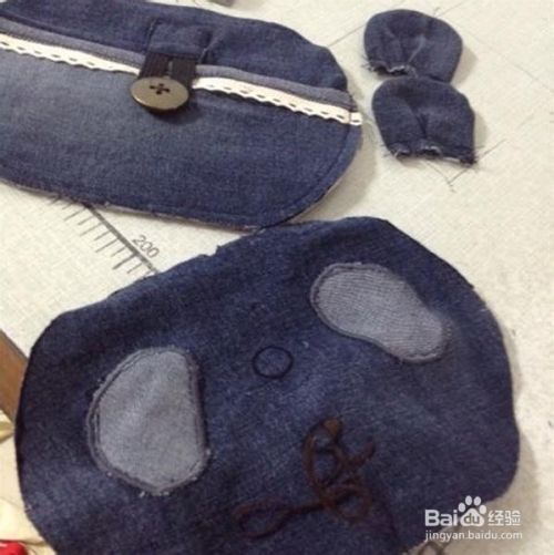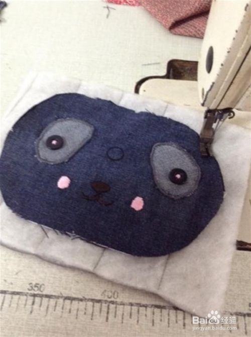 在布上画好椭圆形,剪好两片,是包包的正反两面。拿一片贴布绣缝上眼睛,画好鼻子嘴巴,手针绣好,另一片做了个小口袋。大眼睛像不像熊猫,我也是做的时候才突然要做熊猫的,你们可以发挥想象做成任何形状。眼睛是用家用多功能缝纫机绣的,也可以用手针代替。