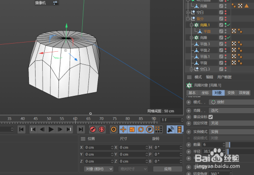 添加一个kelong,数量为6,调整kelong中的变换角度和半径,使对象组合成一个完整的模型。如图所示。