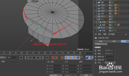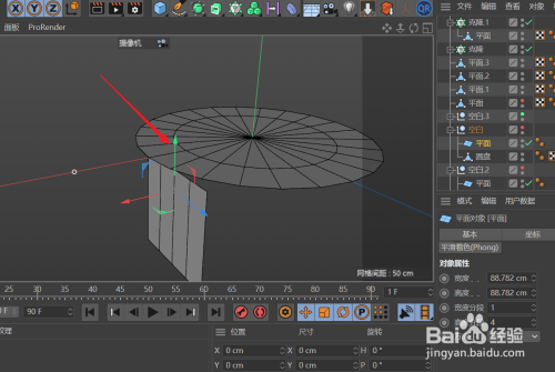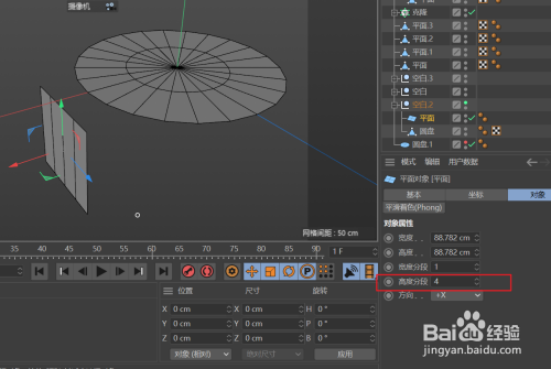 调整平面的高度分段与圆盘的旋转分段相匹配,注意平面调整好后不要在X、Z轴上移动它。