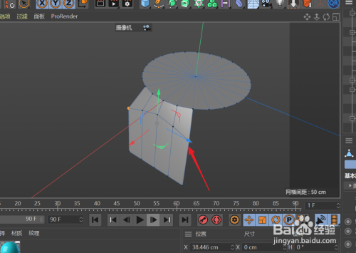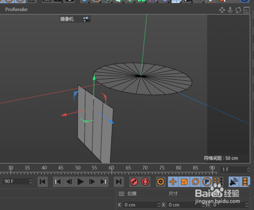 创建一个平面,高度分段为4,方向为+X(与圆盘互相垂直)。