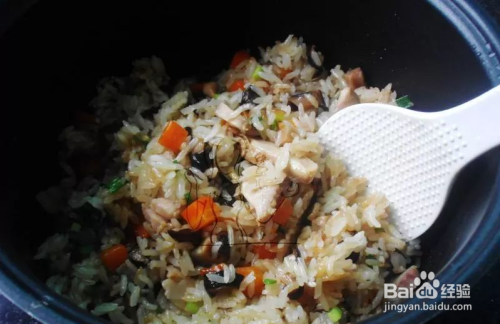 把腊鸡块摆放上面,加入适量水按键煮饭。