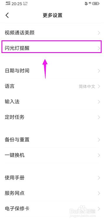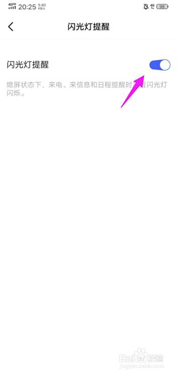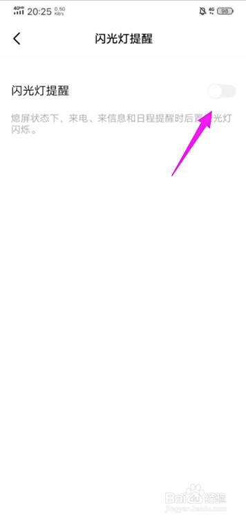 界面里【闪光灯提醒】就是没启动的状态,如图。