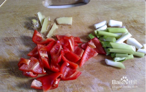 生姜、大蒜、红椒分别切好