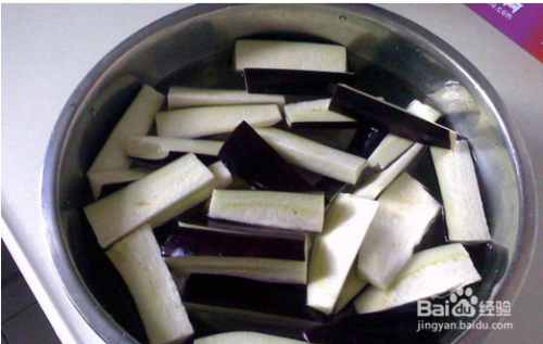 茄子切条状,然后用清水浸泡