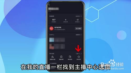 在我的直播一栏找到主播中心选项。