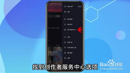 在弹出的界面中找到创作者服务中心选项。