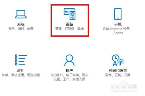第二步:我们进入了设置之后,可以很明了的找到我们想要设置的内容,输入跟键盘有关系,所有应该属于设备。