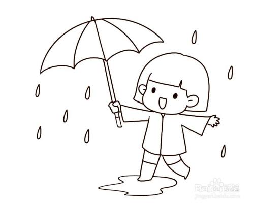 下雨天,小孩子们是最开心的,他们可以撑着伞在外面玩耍,感受下雨天独有的乐趣,我们可以画一幅简笔画。
