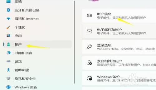设置界面点击账户--账户信息,如下图所示