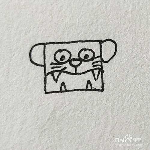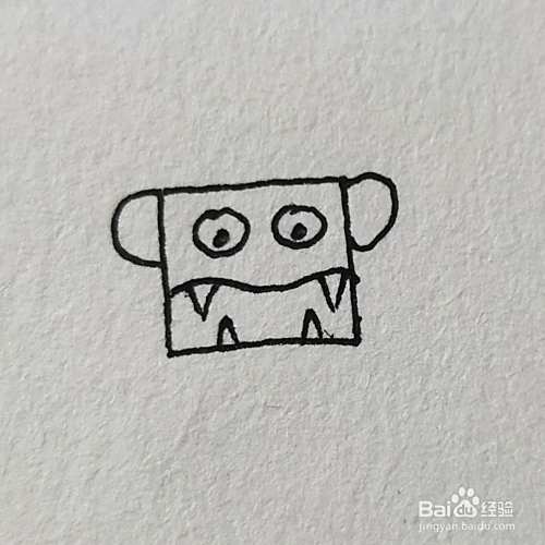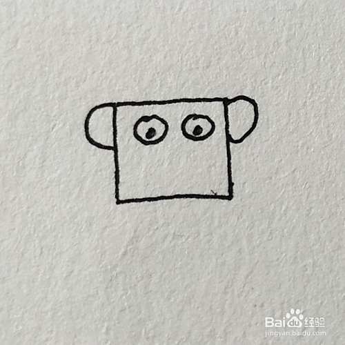 首先画一个四方形的脑袋,画出眼睛和耳朵