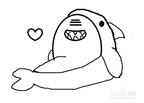 然后画牙齿和眼睛和背鳍。