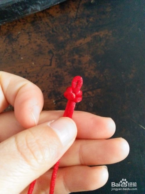 如果我们想把上边的部分变得短一些,我们把红绳拽的更紧一些就行了,这样纽扣结就编成了。下面是完成图。