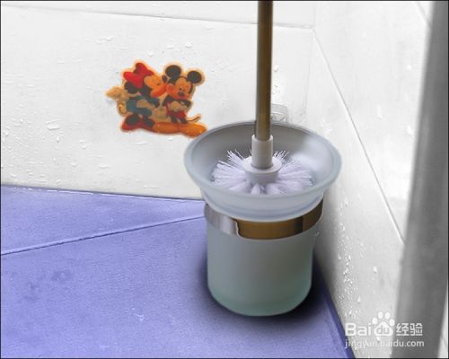 马桶刷也是居家必备的用品,通常都是安防在墙角位置,安装位置都比较矮。因为需要拆掉原来的旧马桶刷,墙壁上会留下安装孔,那么不妨试试像我这样贴上一张有趣的卡通贴纸,挡住墙上原本的破洞,同时也为浴室增加一点小装饰。