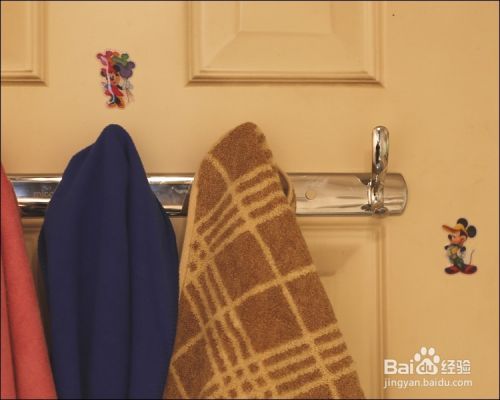 这里可以轻松收纳每个人洗脚帕,平时位于门后,简单收纳,在每个挂钩位置贴上男孩女孩的小贴纸,让孩子理解自己的毛巾需要挂在固定的位置,