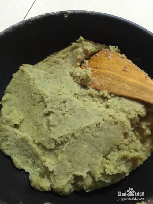 将搓完的绿豆放在水里煮熟,然后用料理机打碎,锅中放少许花生油,将白砂糖和绿豆泥混合,炒的微微发干,这下馅就做好啦,放凉备用。(原谅我图片少吧,第一次做那是相当的手忙脚乱,根本投不出手来拍照啊)