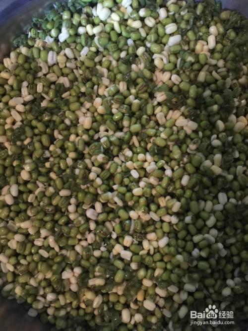 第二天用手使劲搓,使劲搓,把绿色的皮都搓掉,黄色的豆豆露出来。