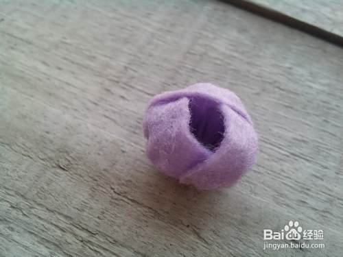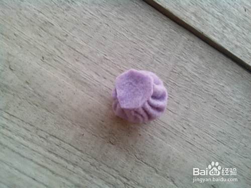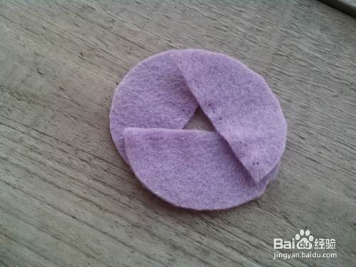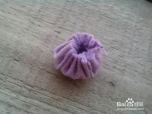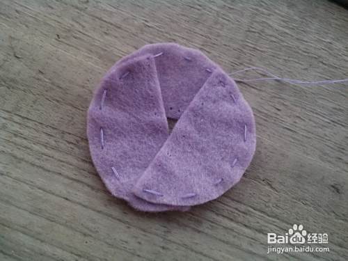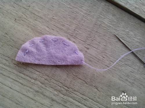 将另一块半圆不织布沿着圆弧缝一圈,拉紧,整理出花瓣状