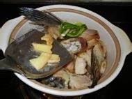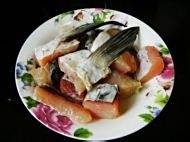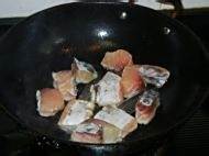 锅里油热,放下鱼块煎成两面发黄,盛出