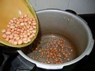 花生洗净,放入高压锅,加适量水,加八角,桂皮,大火煮开,小火闷10分钟,关火