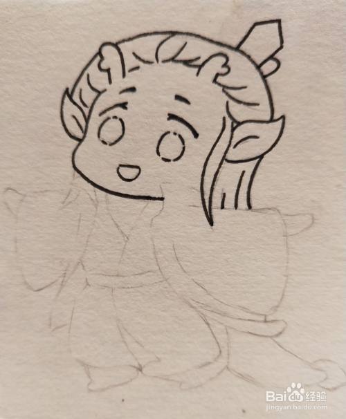 首先用铅笔简单的勾画形体结构。