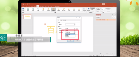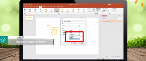 接下来我们在将“动画文本”设置成“按字母顺序”,然后再把字母延迟设置为50%就行了。