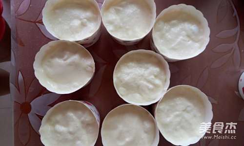13将混合好的蛋糊倒入纸杯中七八分满,之后轻轻震下纸杯,把大气泡震出来,同时顶部会变的比较均匀,之后放入烤箱中层180度,25分钟。END