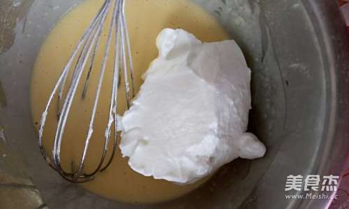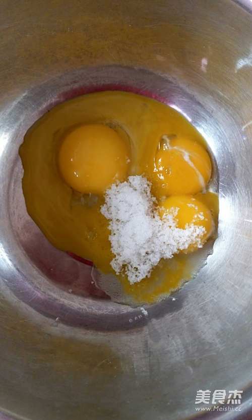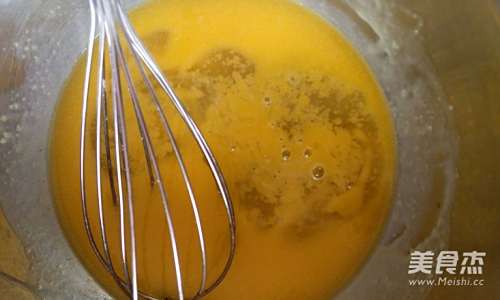 3蛋黄中加入15克糖,搅拌至融化