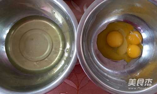 2将鸡蛋分离,蛋清放在无水无油的打蛋盆里
