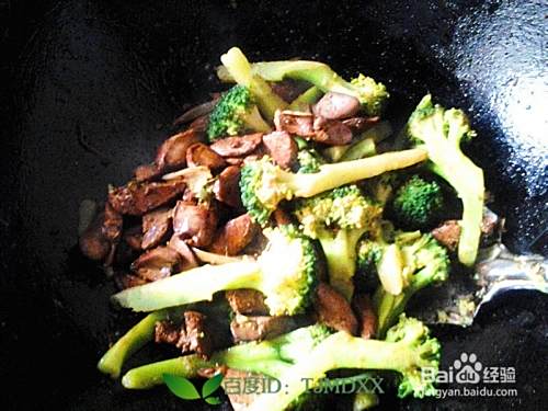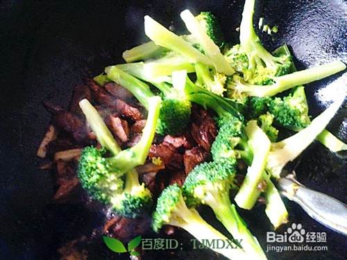 加入提前焯过的西兰花,中火继续搅炒均匀入味。