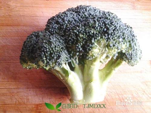 一个新鲜的小西兰花洗净备用。最好是买没有开花的西兰花,这样的好吃。