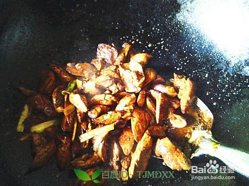 炒锅里倒入适量的植物油,油烧到5成熟,放入切好的鸡肝、盐、胡椒粉、酱油、料酒、葱、鸡精,快速一起翻炒。