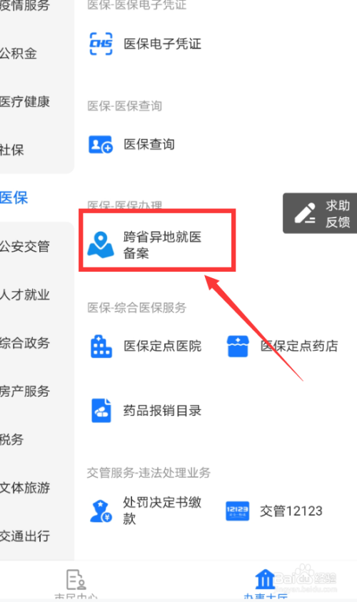 在医保界面点击跨省异地就医;