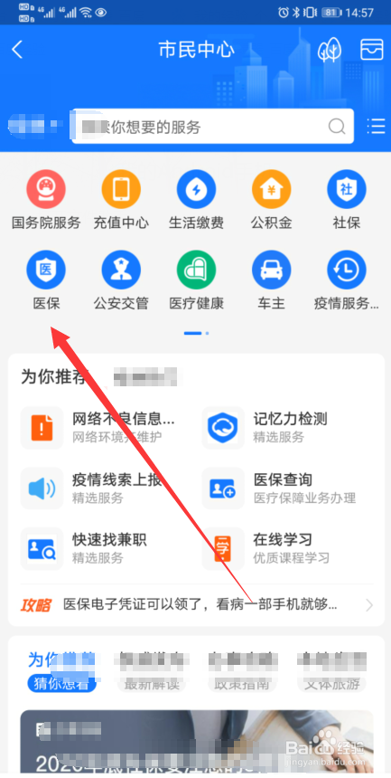 进入市民中心界面,点击选择医保选项;