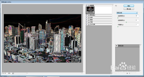 选择滤镜,照亮边缘,设置边缘宽度为1,边缘亮度为8,平滑度为1,点击确定,如图