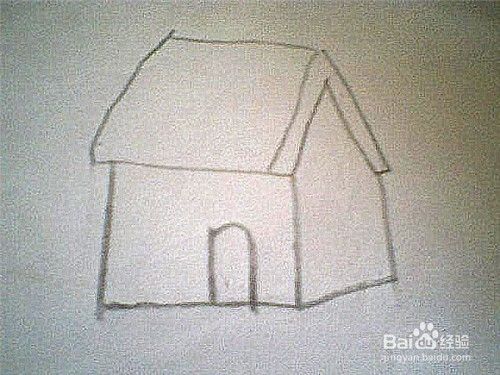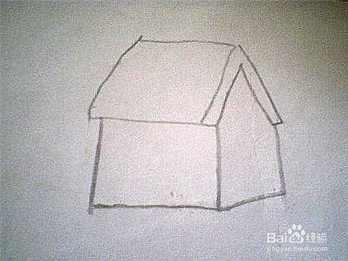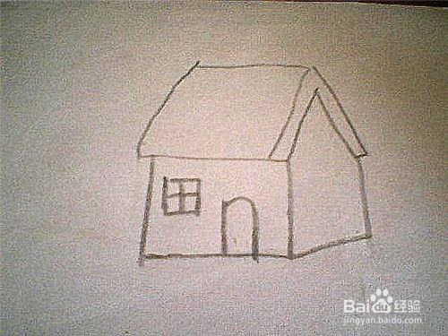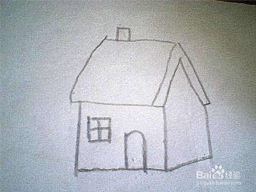 房子后身上盖处画出来烟囱的线条,这幅图画就画完了。