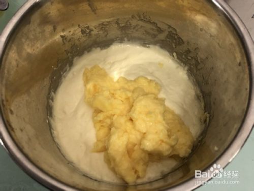 把做好的芝士奶盖,加入做好的卡仕达酱