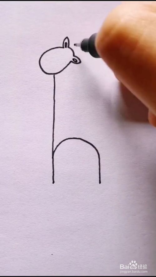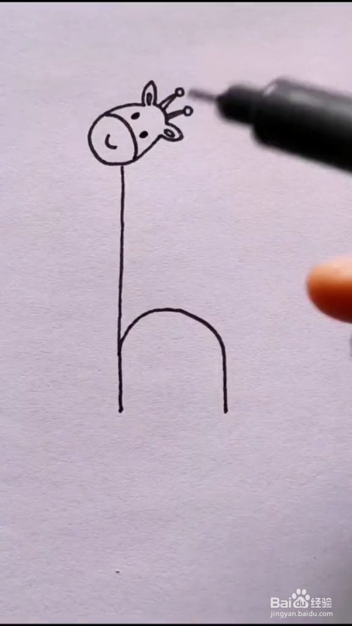 接着画出长颈鹿的犄角,眼睛,嘴巴,如下图所示。