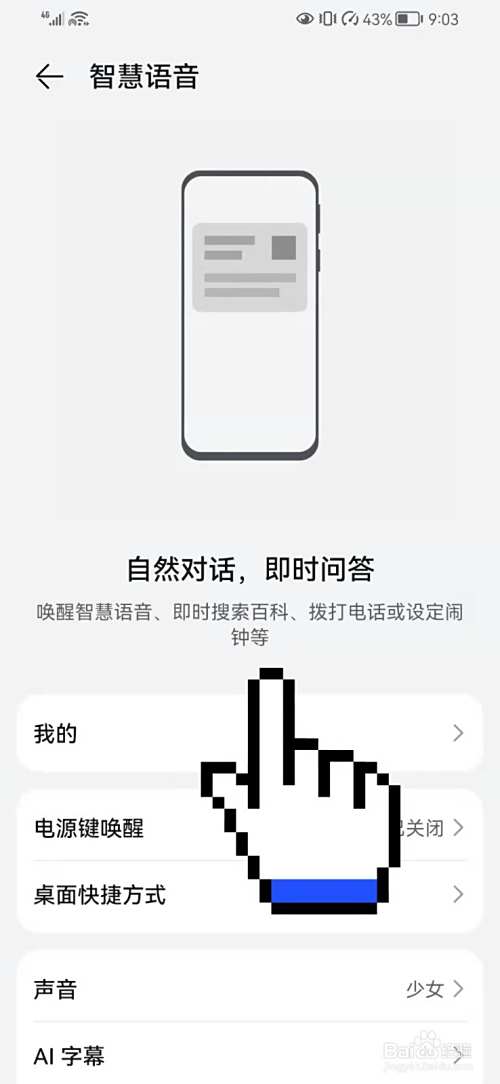 在进入的智慧助手页面,找到上方智慧语音选项,点击进入。