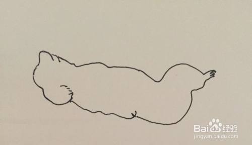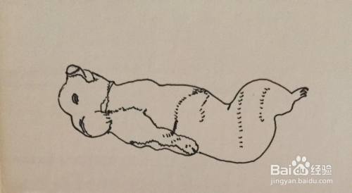 首先在纸上,用黑色勾线笔画出考拉的头部和身体轮廓。我们用笔画出考拉的耳朵、眼睛、鼻子和嘴巴。在其下方画出桉树树干,用笔画出桉树枝干的叶片。